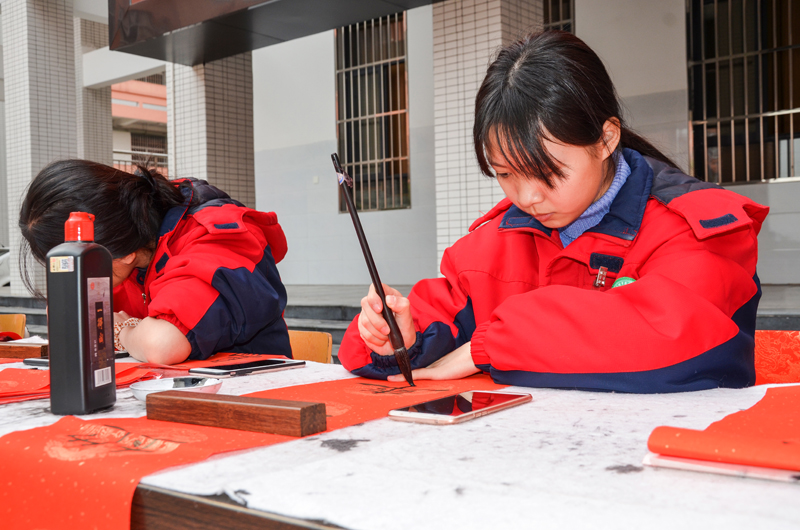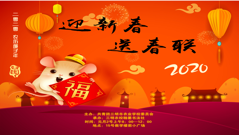 为弘扬中华民族传统文化,传播书法艺术魅力,2020年1月2日上午,由共青团三明市农业学校委员会主办,星空(中国)翰墨书法社承办的“迎新春,送春联”活动在学校15号教学楼前举行。在孙启煌老师的指导下,校翰墨书法社全体社员现场挥墨泼毫,免费撰写春联,提前为广大师生送去新春祝福。