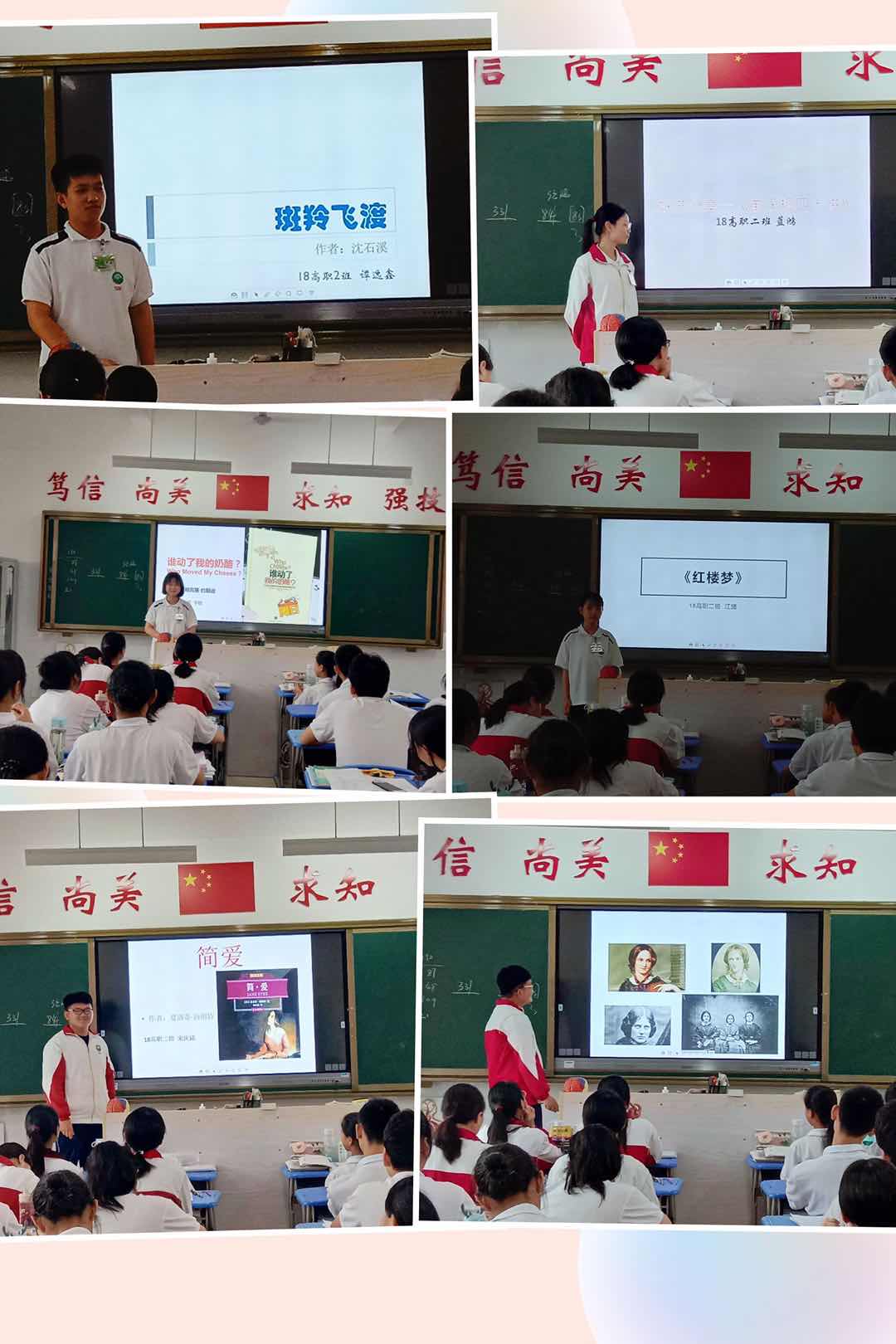 立身以立学为先,立学以读书为本。在五个月的超长寒假中,学校积极响应“停课不停学”号召,向全体学生发布“战役书单”,鼓励大家把阅读纳入每日计划,给自己充电。2020年6月11日晚自习,18高职2班在班主任陈香秀老师的组织下,由姜颖同学主持,开展了“好书推荐”暨假期阅读成效展示会。
