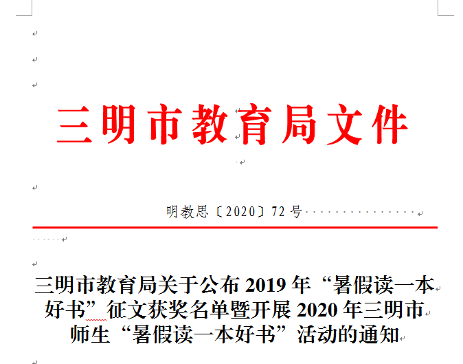 喜报| 星空(中国)在2019年三明市“暑假读一本好书”征文活动中获佳绩