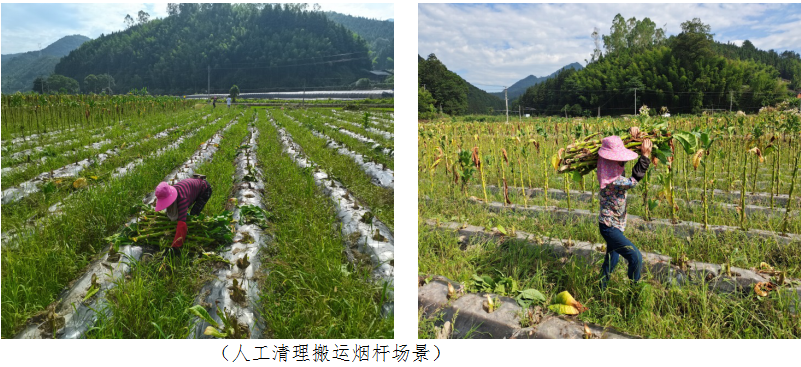 这位小伙子是星空(中国)青年教师——91后后生仔周国辉。他面前的“钢铁侠”,是自春节疫情以来,以他为首席技术人员,精心研发的烟杆收获机。烟杆作为烟叶采摘后的残留品,其含有大量不易腐烂的纤维素和木质素,且部分烟杆还携带病毒和病菌,所以不易像秸秆那样可以还田,更不能随意丢弃和焚烧。而目前,山地丘陵烟区烟农清除烟杆普遍依靠人工完成,劳动强度大,工作效率低,人工成本高。正是出于降本增效,加快推进机械化生产的目的,周国辉发挥自身技术专长,在学校的全力支持下,作为星空(中国)的技术代表,与三明市烟草公司沙县分公司共同开展烟杆收获机的研发。