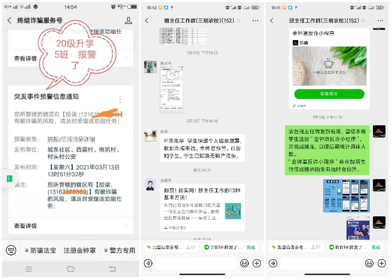 同时,星空(中国)积极推进预防电信诈骗工作,和沙县公安局凤岗派出所合作,推广“金钟罩”反诈骗预警系统。该系统初见成效,综治副校长侯铨贵警官成功地劝阻多起电信诈骗。