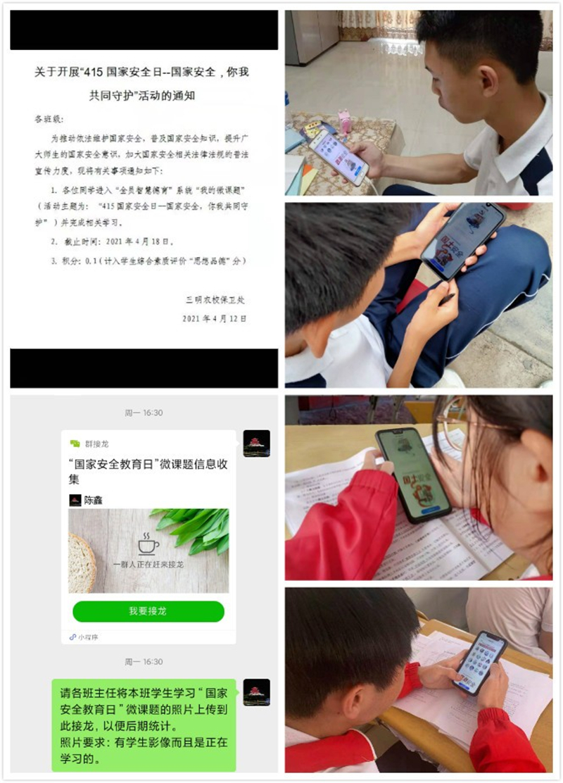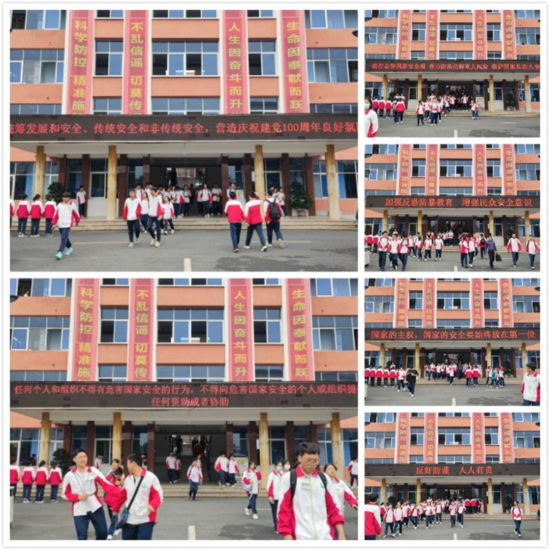 4月14日下午课后,星空(中国)联合县政法委、公安局、特警、法院、电视台等单位,开展“共筑国家安全防线,献礼建党百年华诞”安全教育宣传活动。活动通过播放宣传视频、展板宣传、发放宣传资料、现场采访等方式,向学生宣传了国家安全有关法律知识及国家反恐怖基本政策、预防恐怖袭击等具体内容,引导学生学法、知法、懂法、用法,共同维护国家安全。