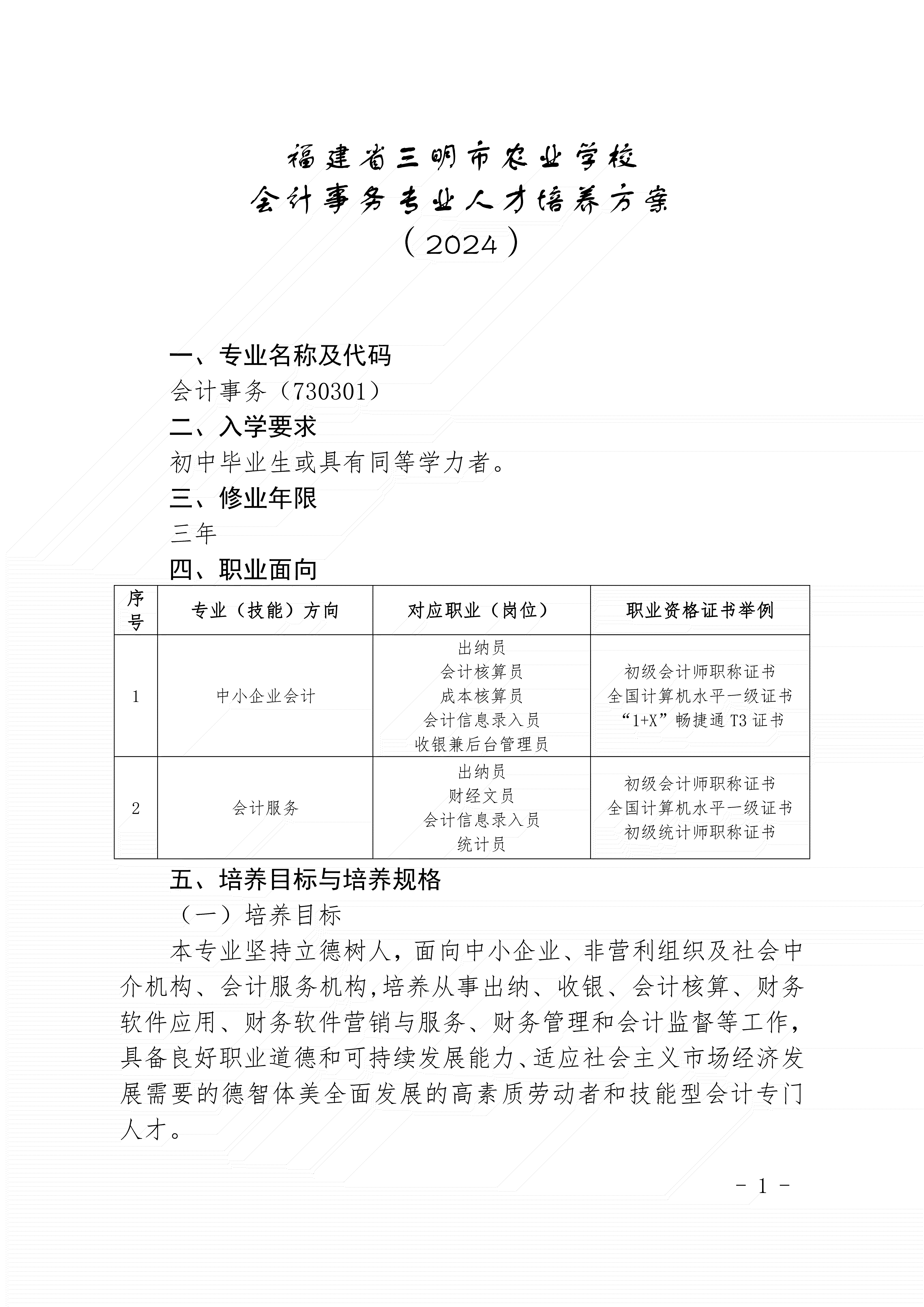 三明市农业学校计算机应用专业人才培养方案(2024)